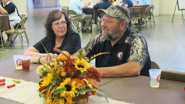 Everyone gathered again at the Missouri State Fair Grounds Agricultural Center for the traditional mid-week Workers' Party. There was wine and beer flowing and a delicious meal prepared by a local BBQ hot spot: Kehde's Barbeque and Catering. There were a lot of groups standing and sitting talking about the week's event so far. Flight A had finished their Third Series while Flight B had a few more to go. There was MARC merchandise for sale in the form of commemorative tees and golf shirts from Retriever Outfitter – Laura Judd, West Region Director and friend Karen Treibel were once again working hard to sell these garments. Brenda Neil's Lucky Lab Pins booth was open for business as well, staffed once again by MARC HT Secretary, Macy Swift. The evening's festivities wrapped up around 9 so everyone could rest up for their next test on Thursday.